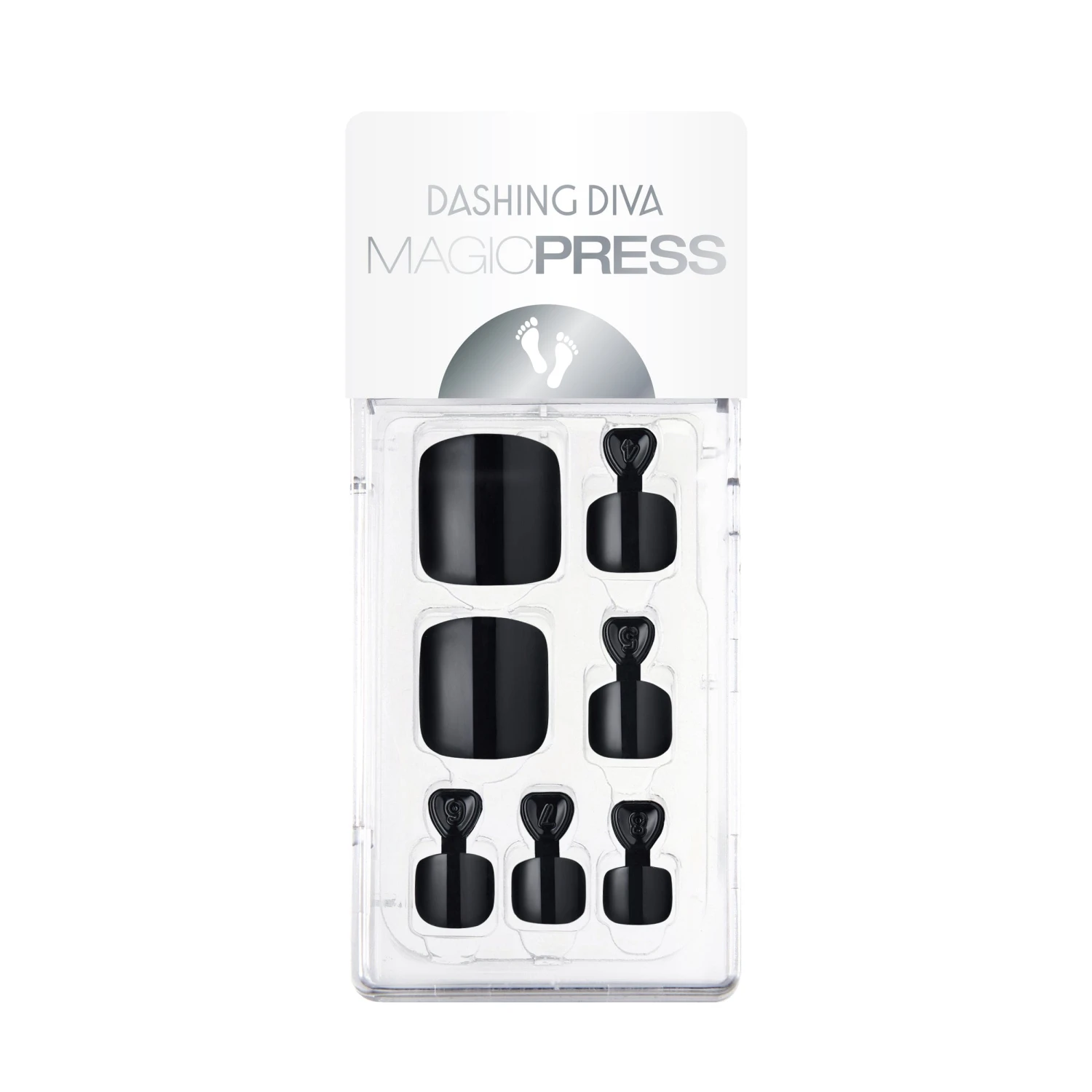 Press-on pedicure gel nails with easy application and comfortable wear. Pop on a glossy black pedicure in the matter of minutes!