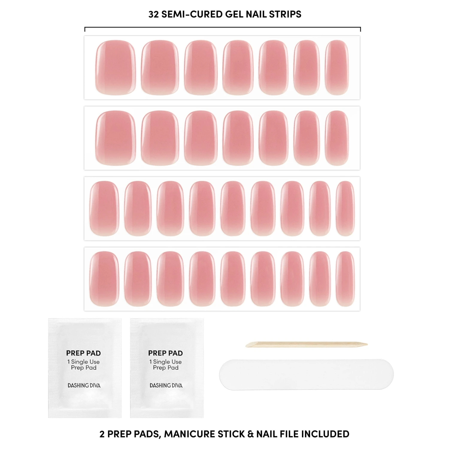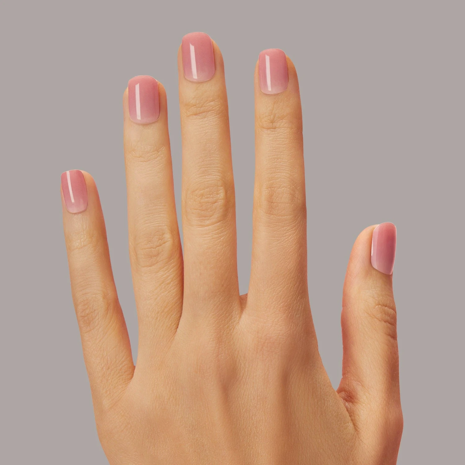 Semi-cured mauve pink gel nail strips with mega volume & a sheer finish.