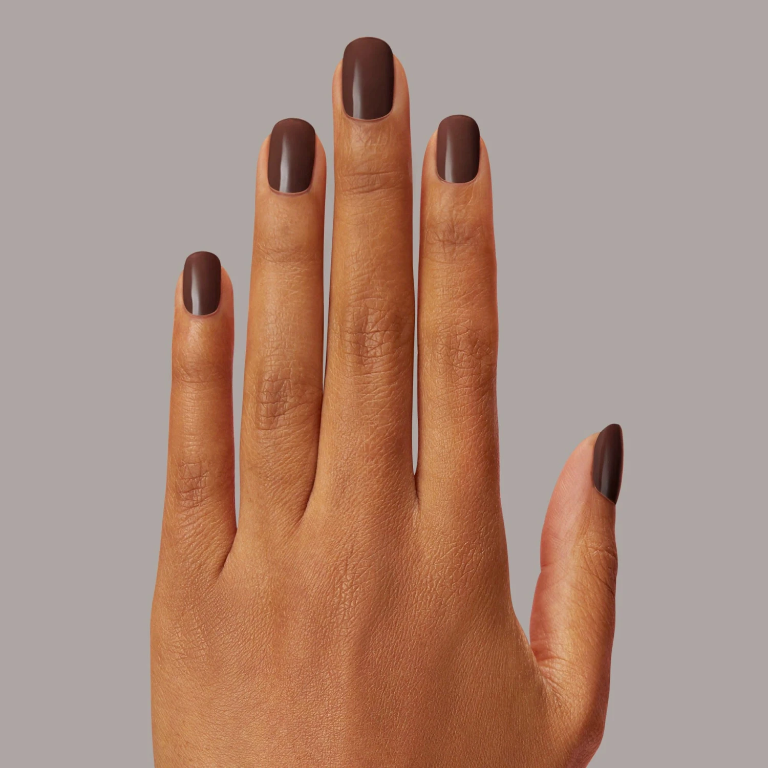 Semi-cured rich dark brown gel nail strips with mega volume & an opaque finish.