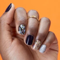 Be the coolest kid on the field trip with cool purple, mauve pink, and gold glitter gel nail strips featuring a playful rainbow flannel print with a glossy, high-shine finish.