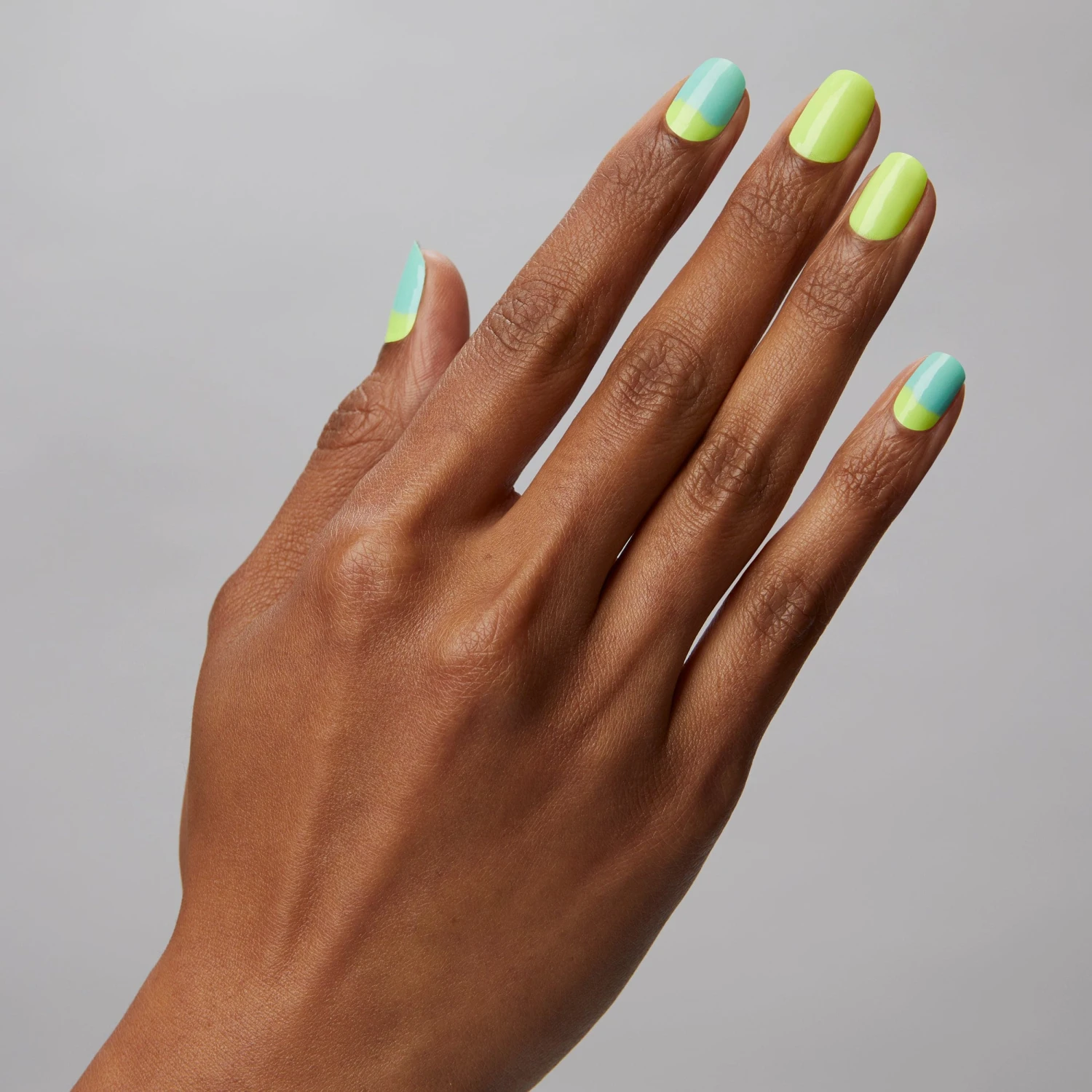 Turquoise & lime green ombré gel nail strips with a double gel formula for an ultra-smooth finish.