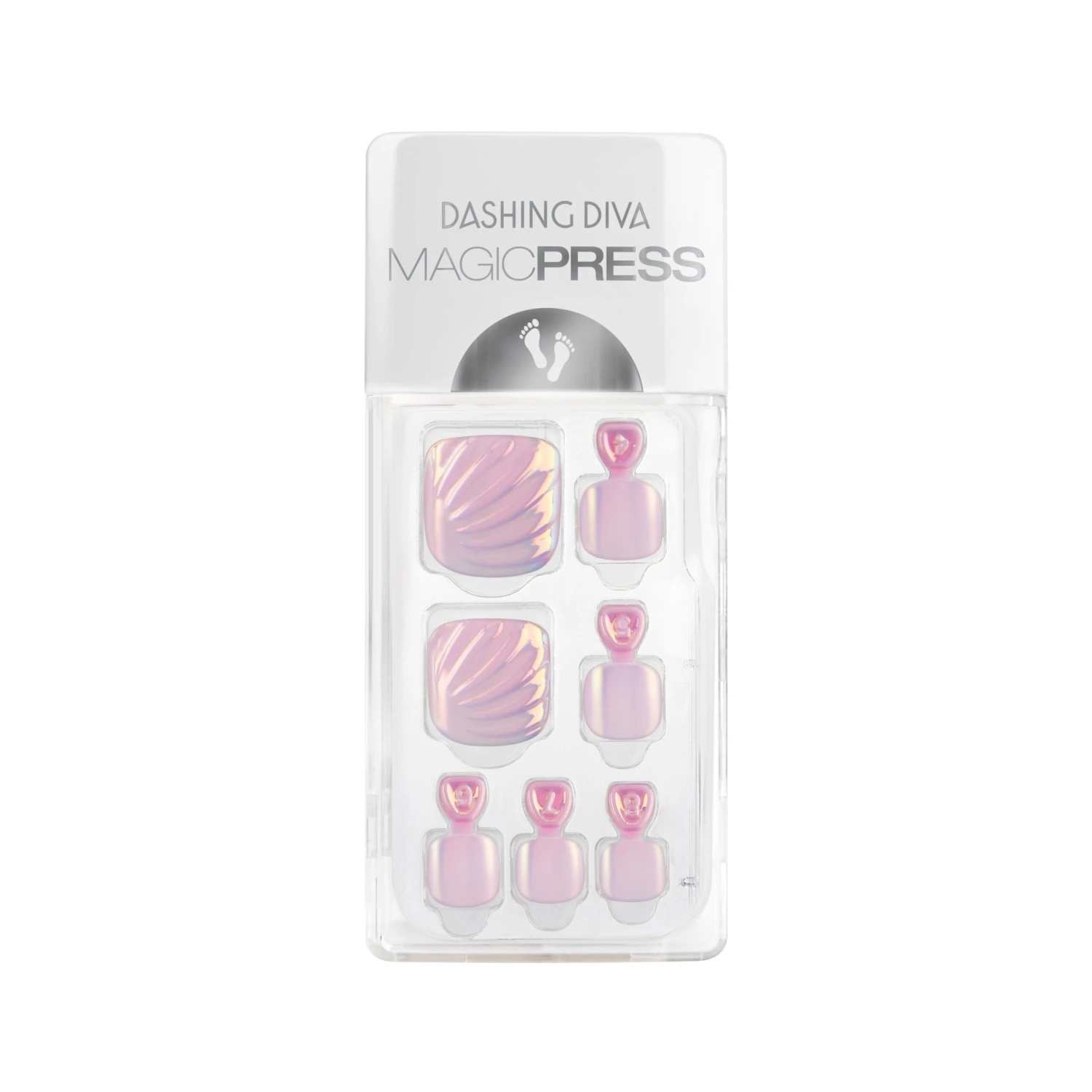 Press-on pedicure gel nails with easy application and comfortable wear. Kick off summer in an iridescent, beach-themed pink pedicure!