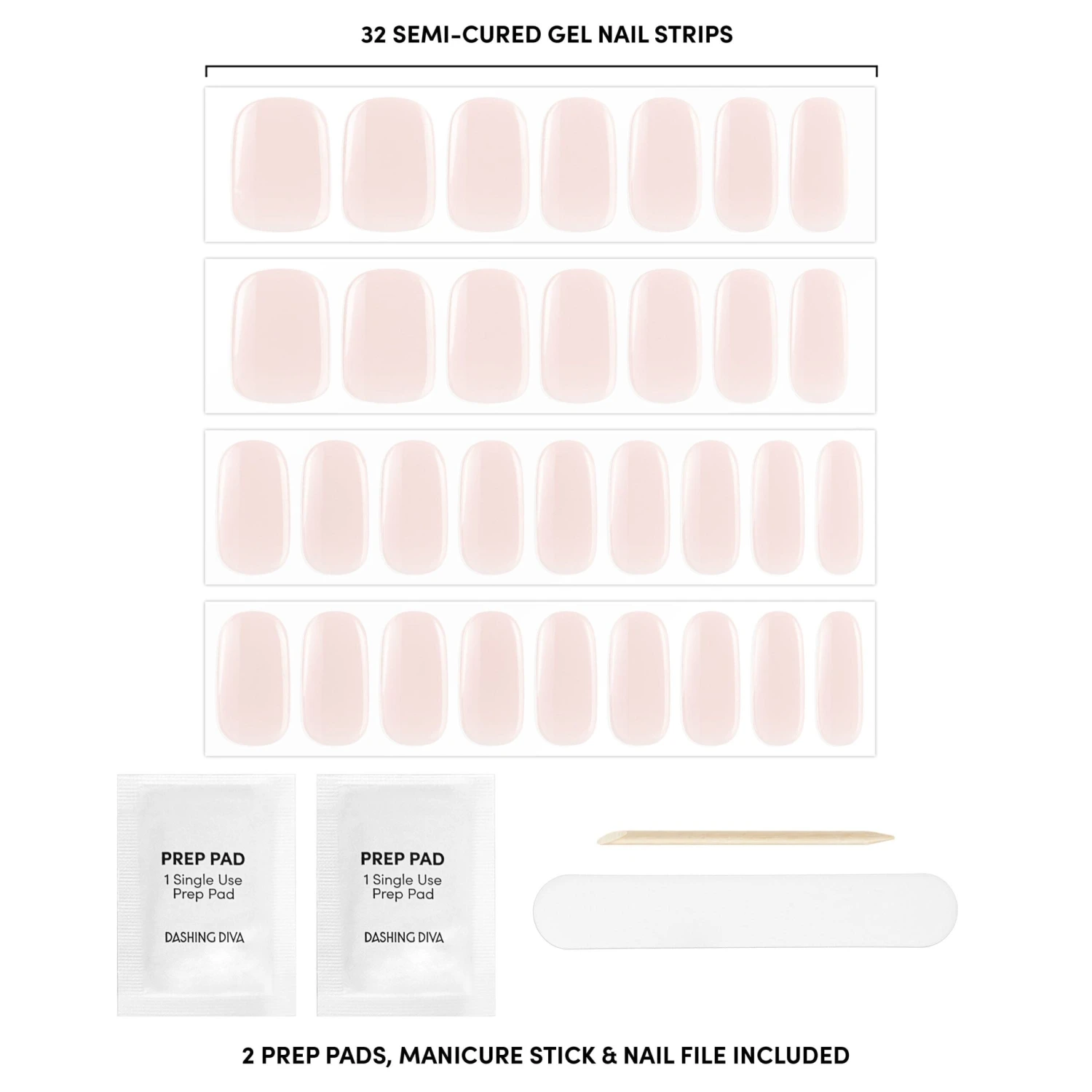 Semi-cured, cool, dusty pink gel nail strips with mega volume & a sheer finish.