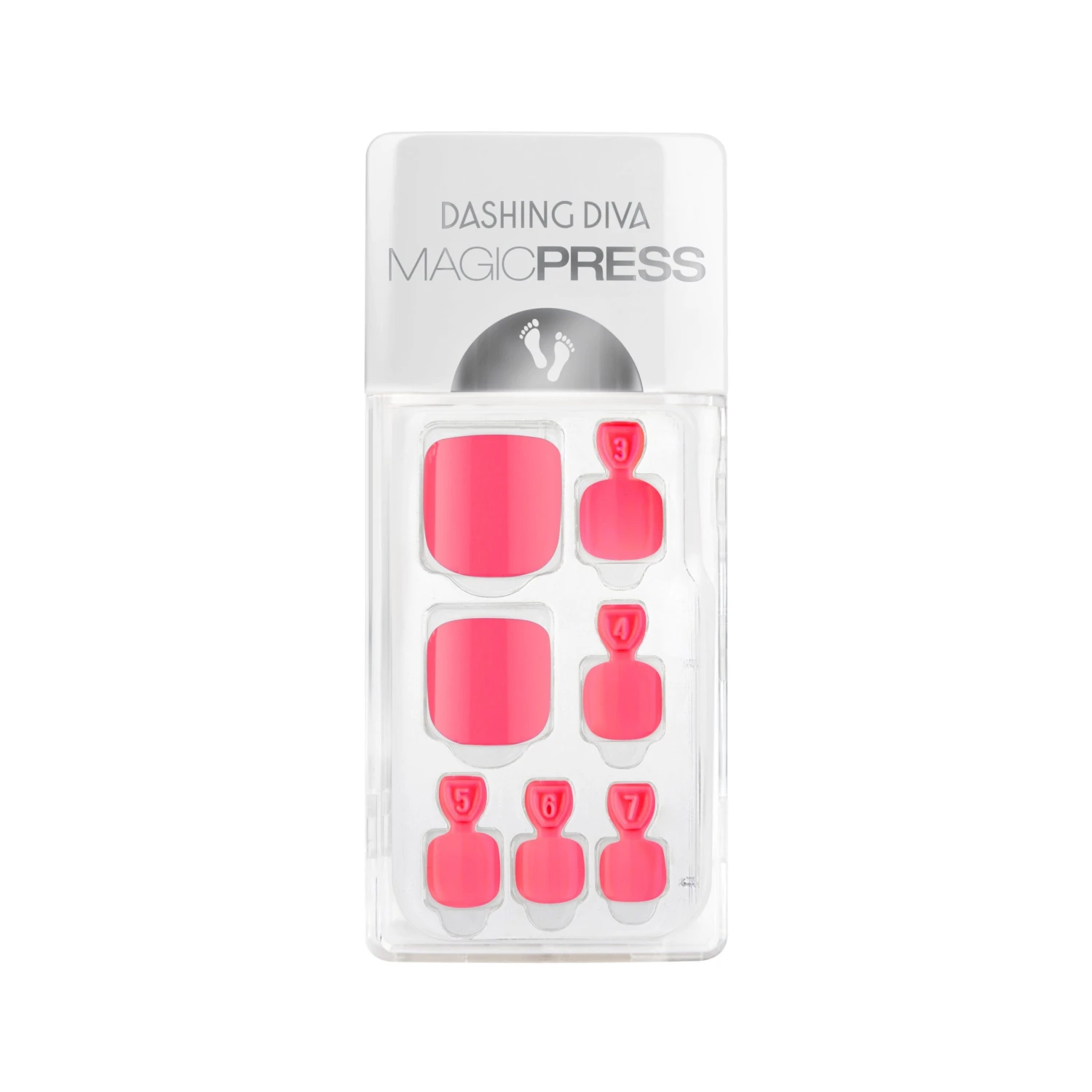 Press-on pedicure gel nails with easy application and comfortable wear. Whether you’re planning a vacation or a staycation, this hot pink pedicure will take you to paradise!