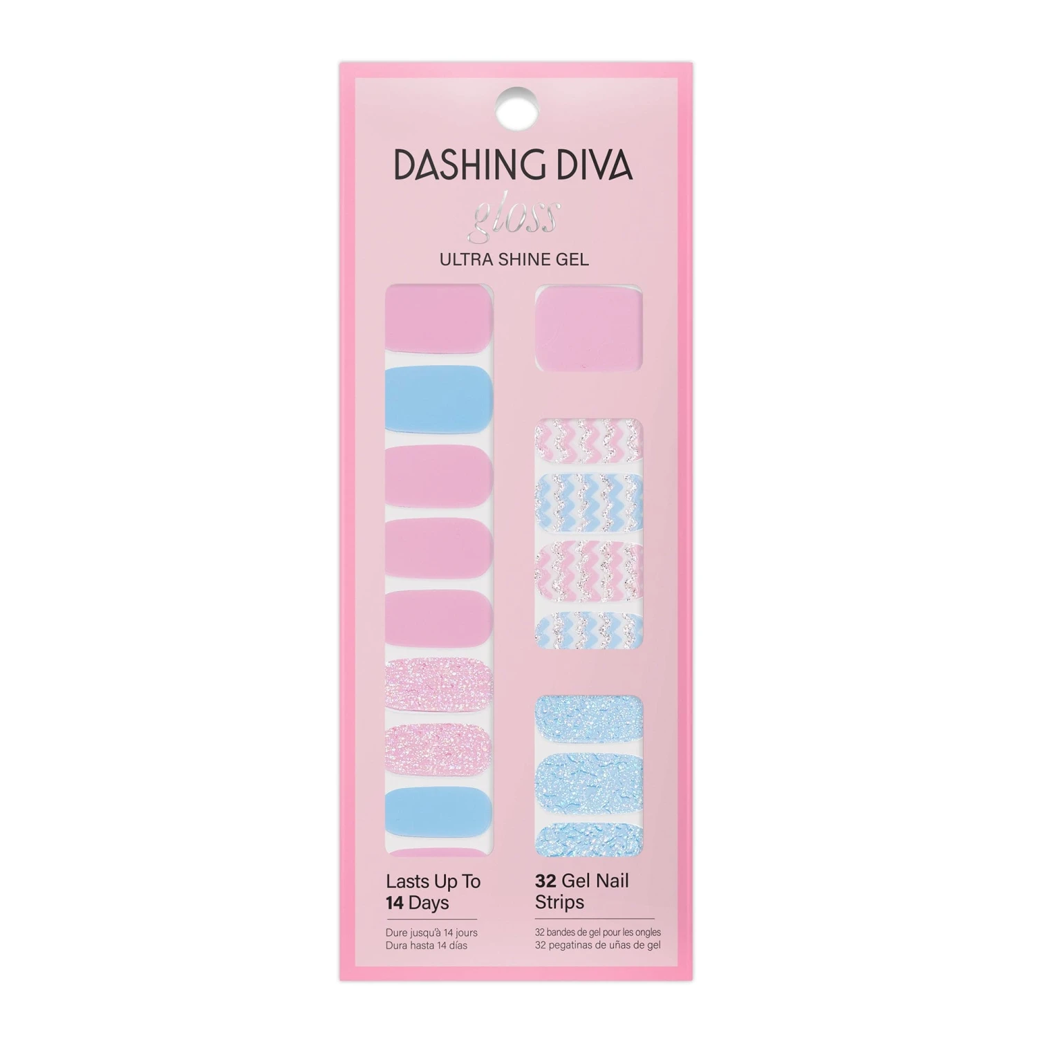 Bringing tradition to your tips. 🥚 💅🏽 Light blue & salmon pink gel nail strips featuring blue & rose gold glitter and chevron accents with a glossy, high-shine finish.
