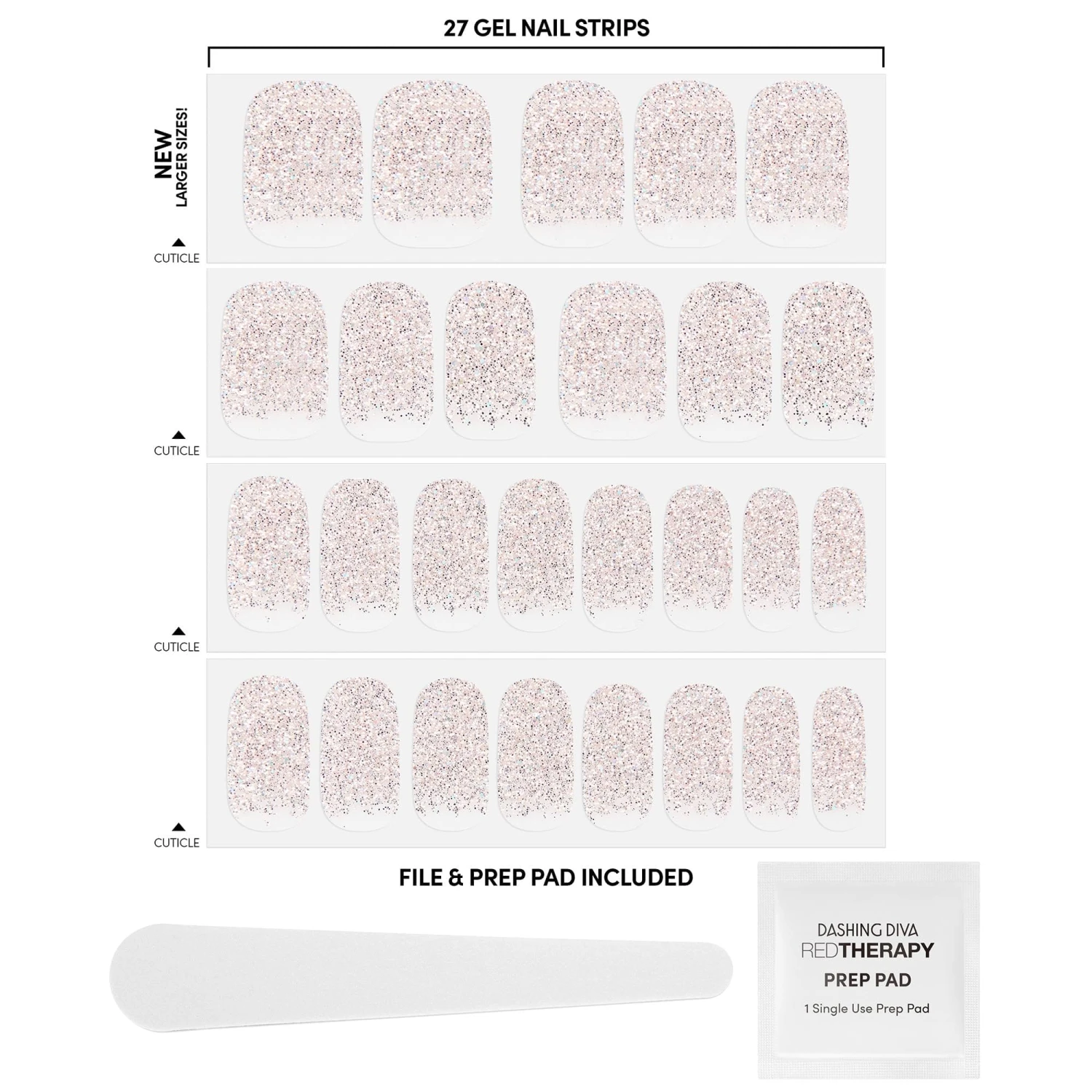 Pour up a glass of your favorite rosé and enjoy the buzz of glamour! Champagne glitter gel nail strips with a glossy, high shine finish.