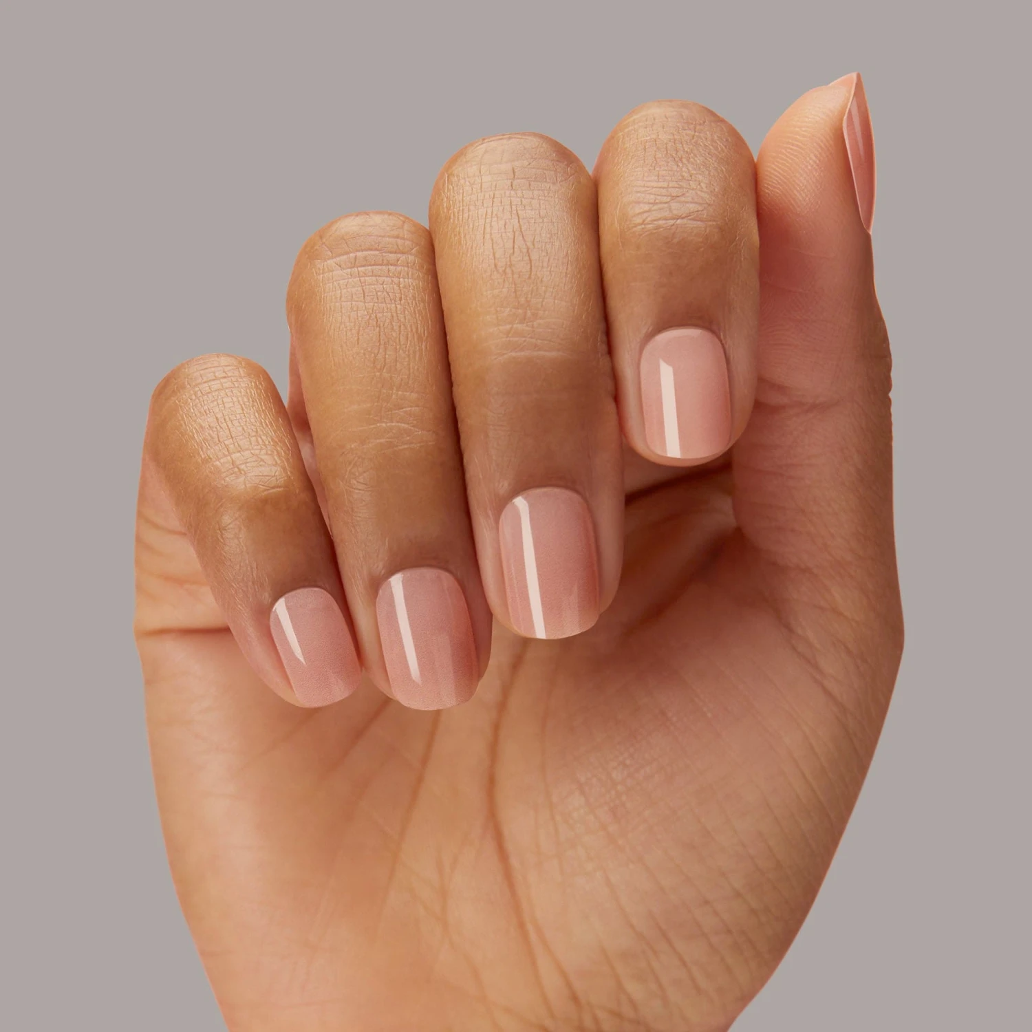 Semi-cured cool nude rose gel nail strips with mega volume & an opaque finish.